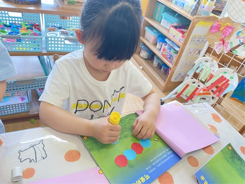 可爱的毛毛虫 来源:锦程幼儿园 发布时间:2022-05-23 13:03:05 浏览次数: 次 【字体:小 大】 “虫宝宝的身体不见了,请宝贝们利用两个颜色的圆形拼贴出毛毛虫的身体。”“宝宝们,快看,老师是怎么拼的呢?”“红色,蓝色;红色,蓝色;红色,蓝色……”“你们能按照老师的方法,拼一拼吗?”孩子们纷纷模仿着老师的方法,忙活了起来。拼组的过程中,初步认识了什么是“规律”。 分享到: 【打印正文】